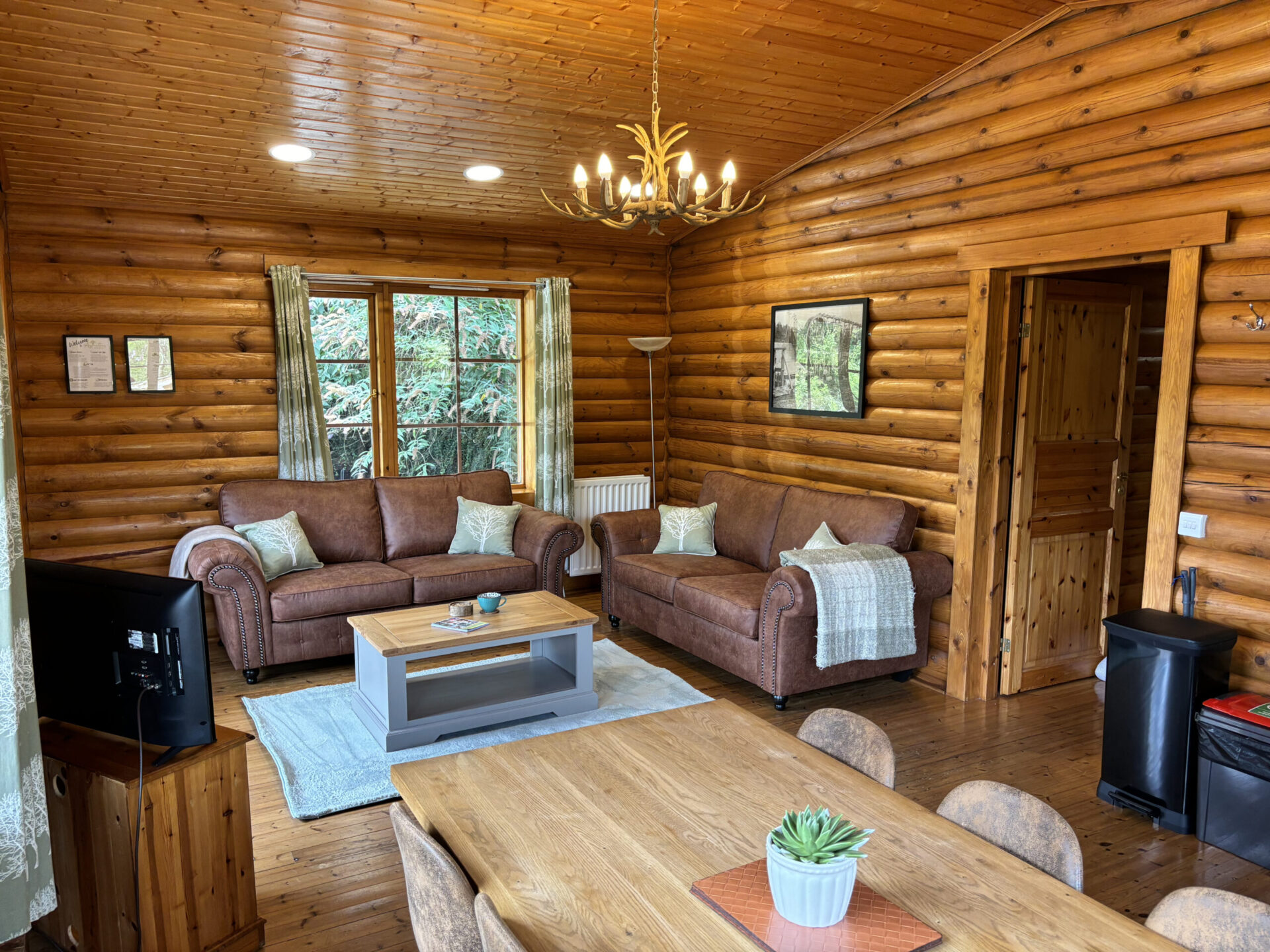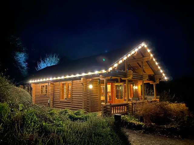 Real log cabin featuring…